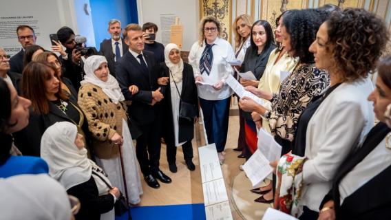 Inauguration par le Président de la République de l'exposition temporaire sur « Les Courageuses » à la Maison Élysée, le 25…